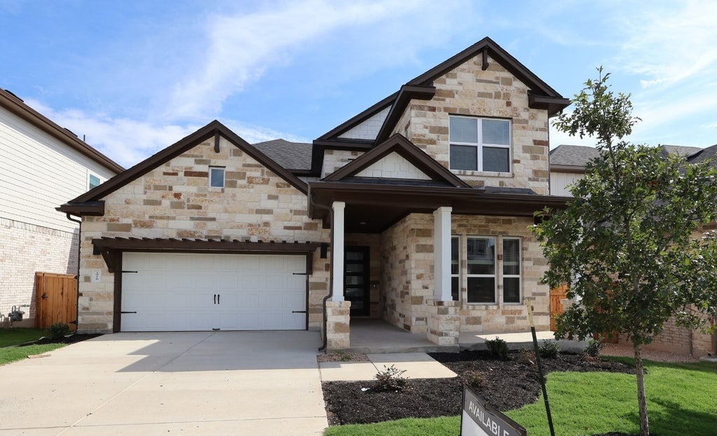 This wonderful Balcones plan, known for its open concept, features a private front bedroom and bathroom tucked just off the foyer, perfect for guests. Farther down the entry you'll a formal dining room, from whitch you can enter to kitchen and pantries. The kitchen opens to the grand family room with high ceilings. This north facing home has a lot natural light from its 2 stories of windows in the family room. The owners suite is right off the family room, and features a beautiful bay window, two closets in the bathroom, and a dual vanity sink. You'll notice the beautiful open rail staircase as you walk to the 2nd floor. Here' you'll find two spacious bedrooms, and a large bathroom between them. Just across the way, there's a large game room, and that leads you to your very own media room, complete with it's own powder bath. The backyard of this gorgeous home features an extended covered patio with a gas line, perfect for outdoor cooking. Call to schedule a visit to view this home with all of its upgrades and design options. Estimated completion date is in October.
