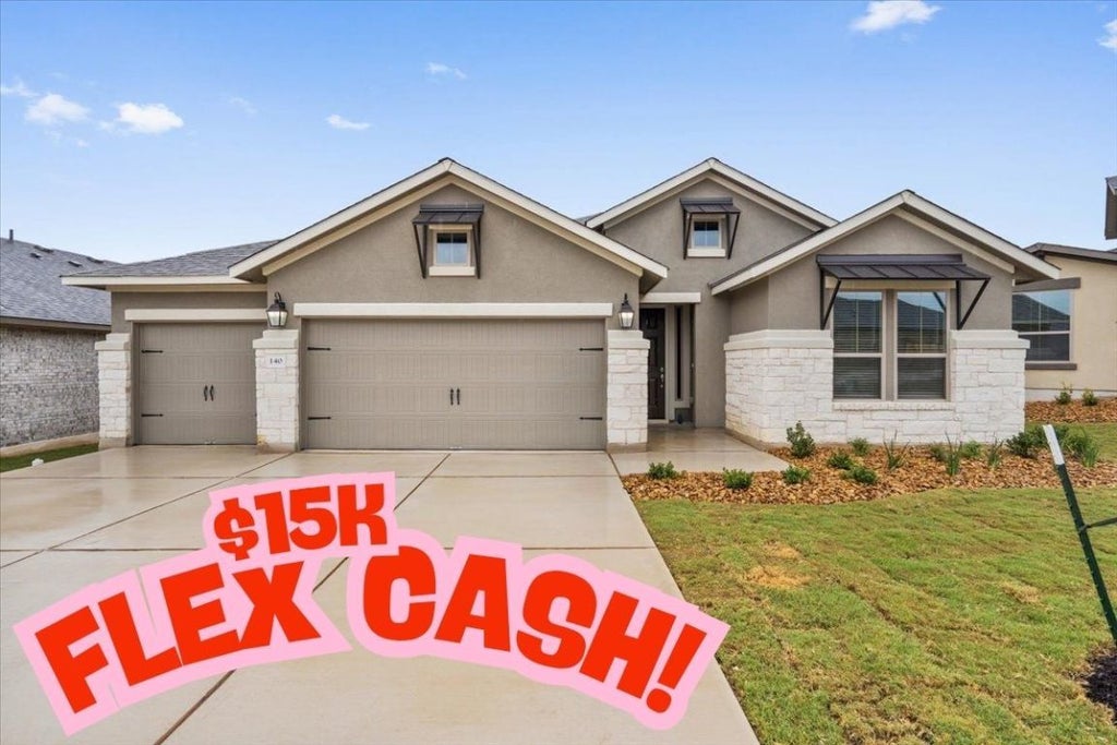MUST SEE! NEW Scott Homes single story with 3 CAR GARAGE on 60’ homesite. Amazing floorplan with 4 Bed/3 Bath and covered Outdoor Living. Gourmet open kitchen w/center island; Stainless Appliances and Contemporary EVRGRN Cabinetry . Gorgeous wood plank floor tile extends thru Family Room. Elegant 8' doors and High Ceilings Thru-out. Luxurious Master Suite features Oversize Shower w/seat; Two vanities; HUGE closet Plus linen. Covered patio, full sod and sprinkler system. Energy Audit w/HERS certificate. Come and visit all 7 move-in ready homes AVAILABLE on this street! BUILDER IS OFFERING 15K IN FLEX CASH!! USE IT HOWEVER YOU'D LIKE: REDUCE LIST PRICE, TOWARD CLOSING COST, RATE BUY DOWN?? YOU DECIDE.
