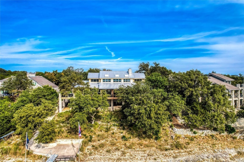 Welcome to this exceptional 5-bedroom, 4-bathroom Waterfront estate, where luxury meets tranquility. With over 3,900 square feet of living space, this home offers ample room for both relaxation and entertainment. Situated along the serene shores of the Lake Travis, you’ll enjoy breathtaking water views. The expansive open floor plan is designed to highlight the stunning natural surroundings, featuring large windows that bring the outdoors in. The chef’s kitchen boasts high-end appliances, granite countertops, and custom cabinetry, perfect for preparing meals while overlooking the water. The elegant living spaces include a spacious living room with a fireplace and a formal dining area, ideal for family gatherings or hosting guests. The primary suite offers a peaceful retreat with private access to the outdoor deck, where you can unwind while watching the sunset over the lake. The en-suite bath is a spa-like oasis, complete with an oversized walk-in shower, and dual vanities. Each additional bedroom is generously sized with large closets and easy access to well-appointed bathrooms. Outside, the private backyard is an entertainer’s dream, with a large patio area, hottub, and direct access with a golf cart ramp to the lake for kayaking, fishing, or simply enjoying the serene views. The oversized custom boat dock has two slips, 50 amp power on dock. This home combines luxury, comfort, and natural beauty in a truly unique setting. Don’t miss your chance to own a piece of paradise in Lago Vista!