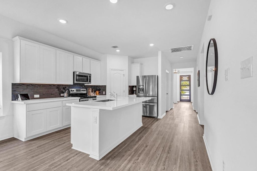 Welcome to your dream home! This single-floor, four-bedroom, three full bath residence offers an open, light-filled interior, a spacious driveway, plus a 2 car garage and a stunning backyard backing up the golf course. The kitchen is well laid out, featuring modern appliances and an inviting island. The living area with large windows and serene golf course views. The fourth bedroom can double as a home office. The master suite boasts a walk-in closet and a luxurious en-suite bath. Enjoy mornings on the patio, taking in the beauty of the golf course. This property is enhanced by a community with a pool, picnic areas, playgrounds, and scenic trails. Live the luxury lifestyle you've always wanted!